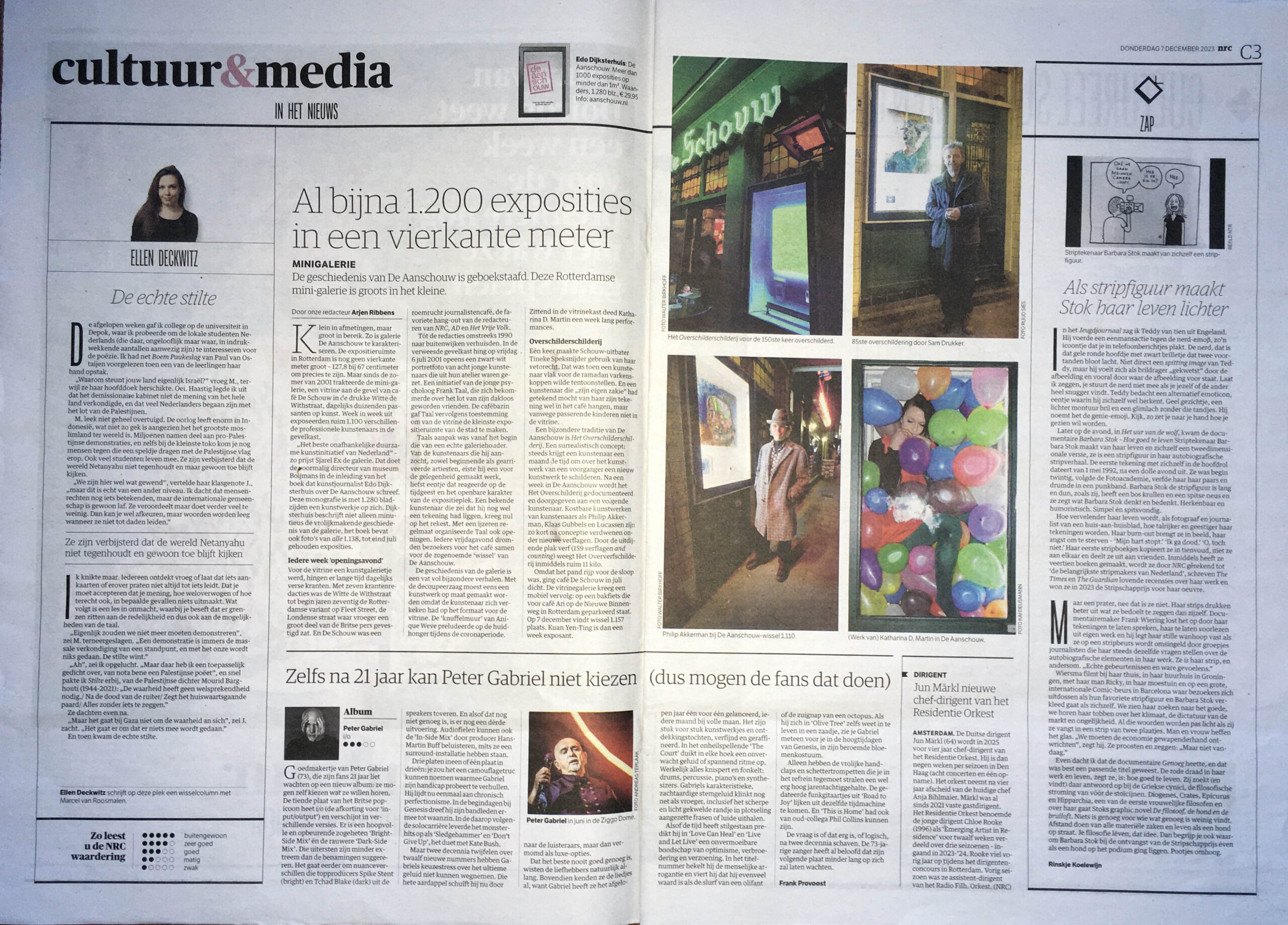 Op 2 december 2023 wordt het eerste exemplaar van het Grote Aanschouw-boek uitgereikt aan Frank Taal, de geestelijke vader van De Aanschouw. We vieren de levendigheid van kunst en de collectieve passie die De Aanschouw al die jaren heeft gedreven en waarop het ook in de toekomst kan bouwen. Het boek is verkrijgbaar voor slechts €29,95, een eerbetoon aan de blijvende erfenis van De Aanschouw.